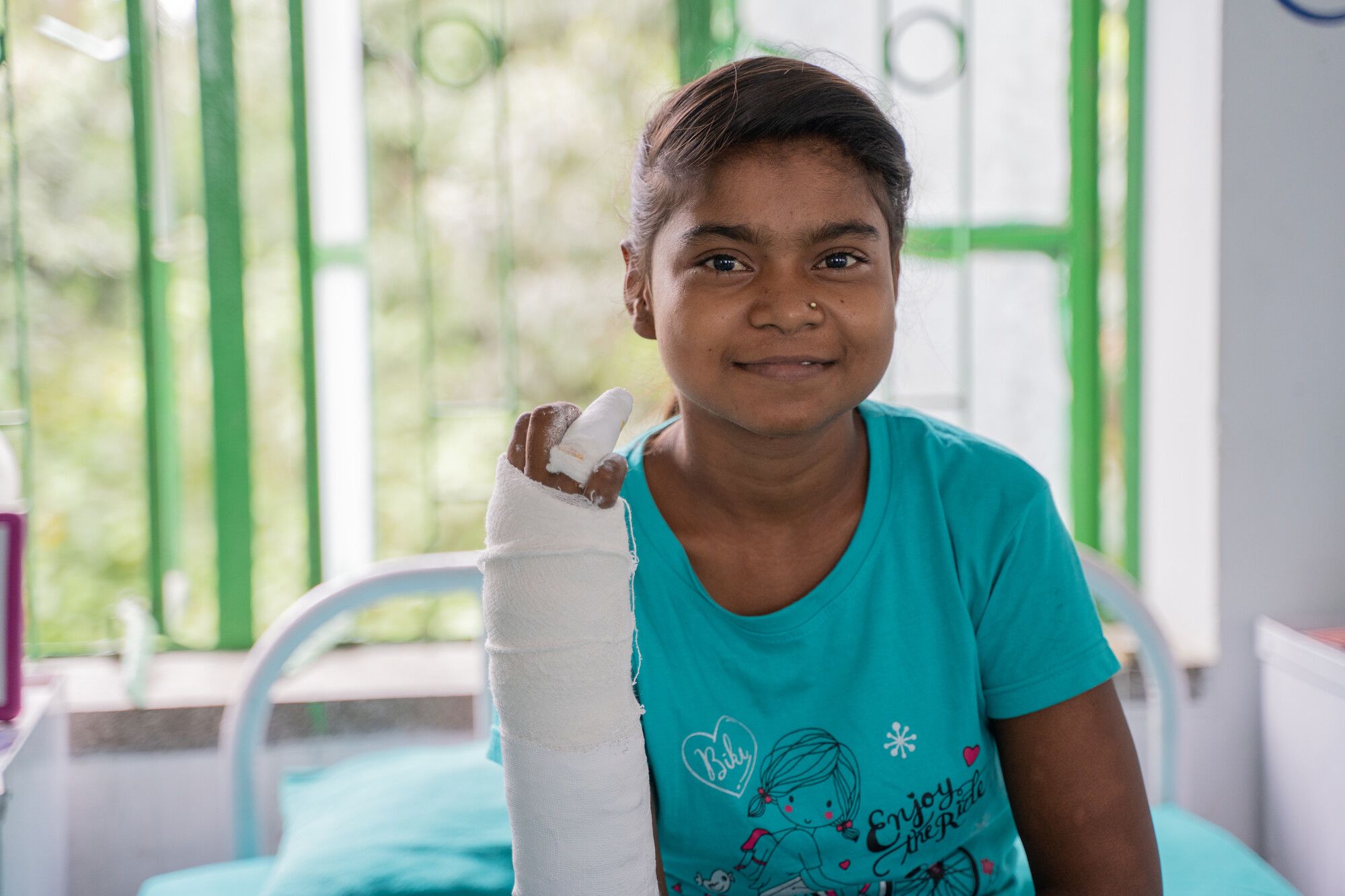 As Saloni sits on the edge of her hospital bed, a smile breaks out across her face. She has just had an operation on her hand which will mean soon she’ll be able to grip objects again.
